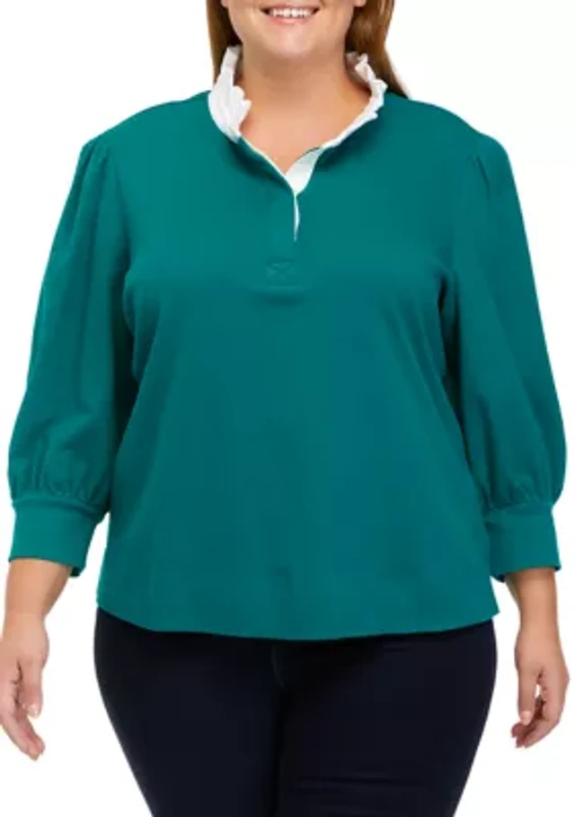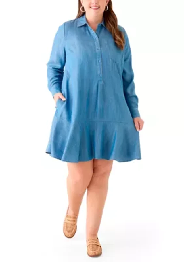 Plus Long Sleeve Flounce Hem Dress Shirt