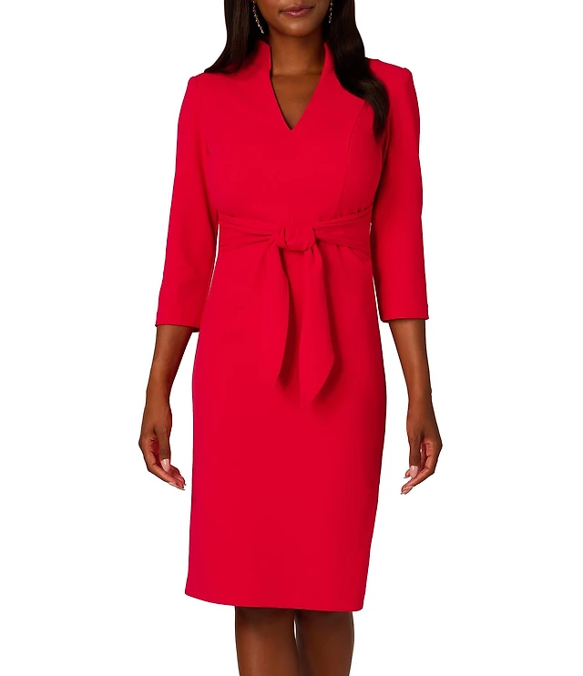 Jessica Howard 3/4 Cuff Sleeve Collared V-Neck Tie Sash Ball Gown