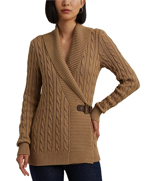 Lauren Ralph Lauren Ribbed Shawl Collar Long Sleeve Side Buckle Sweater