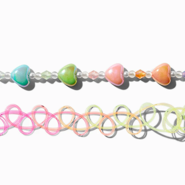 Ombré Heart Beaded Choker & Rainbow Tattoo Chokers - 2 Pack