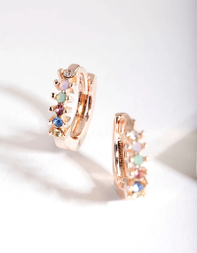 Gold Diamante Rainbow Cloud Huggie Earrings