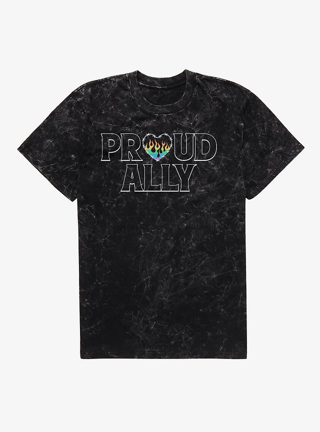 Pride Proud Ally Flames Mineral Wash T-Shirt