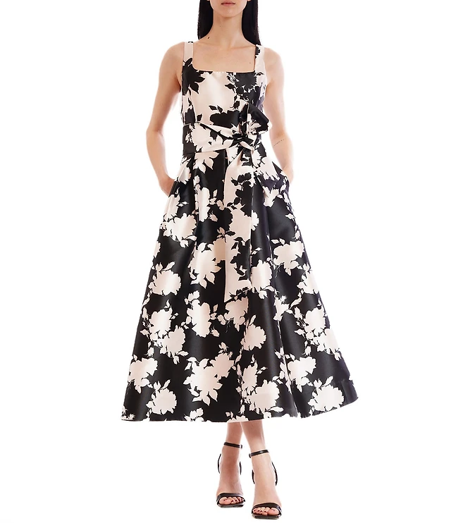 Kay Unger Lillian Metallic Mikado Boat Neck Sleeveless Large Bow Midi Dress