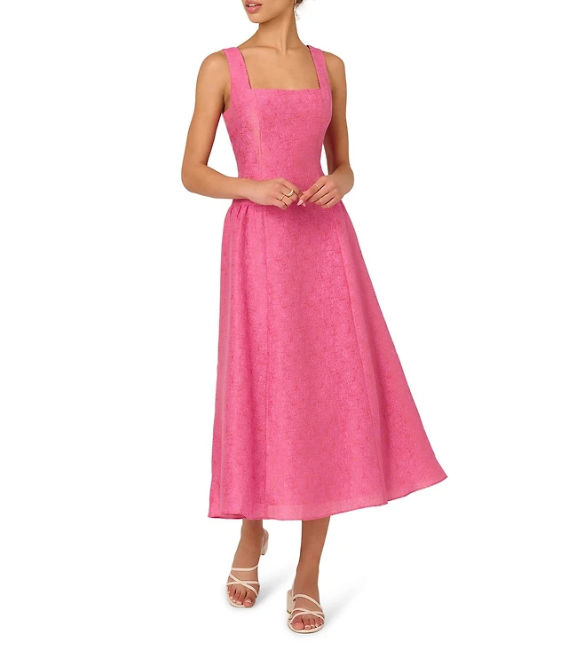 Adrianna Papell Textured Jacquard Square Neck Sleeveless A-Line Midi Dress