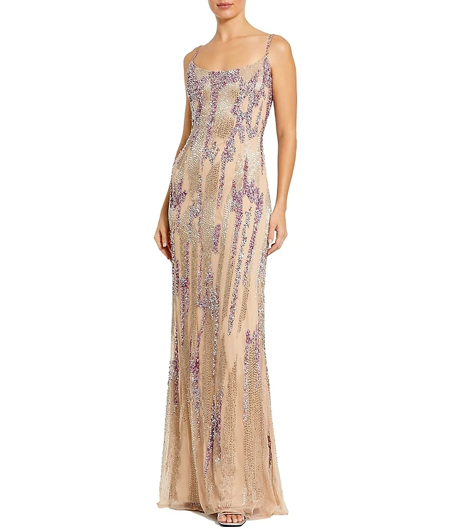 R & M Richards Sleeveless Embroidered Sequin Mesh Long Dress