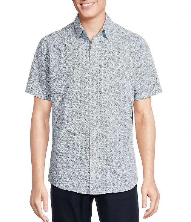Cremieux Blue Label Geo Print Knit Oxford Short Sleeve Woven Shirt