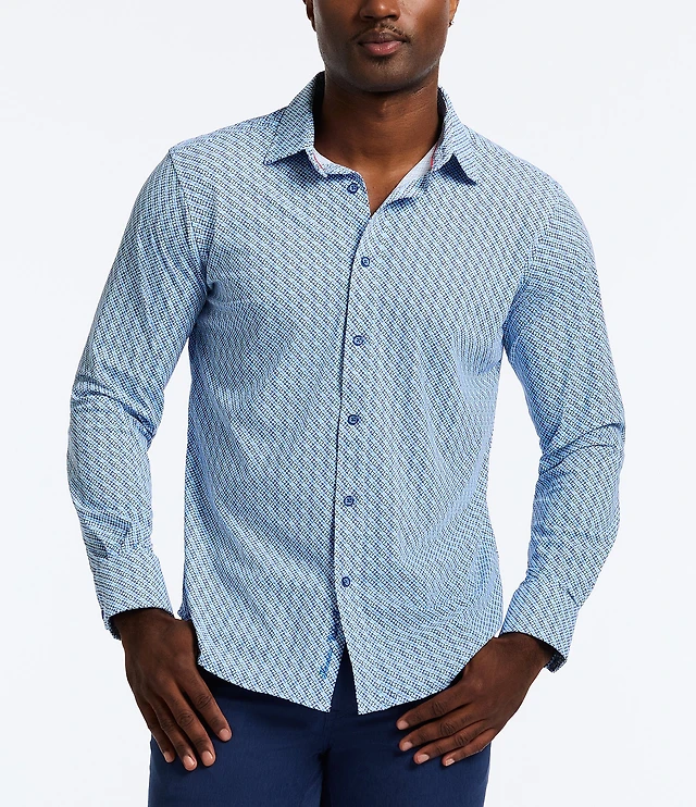 Daniel Cremieux Signature Label Diamond Print Luxe Stretch Long Sleeve Woven Shirt