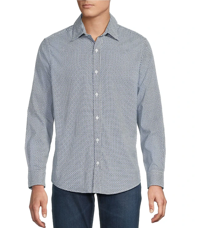Roundtree & Yorke Performance The Traveler Long Sleeve Geo Print Twill Sport Shirt