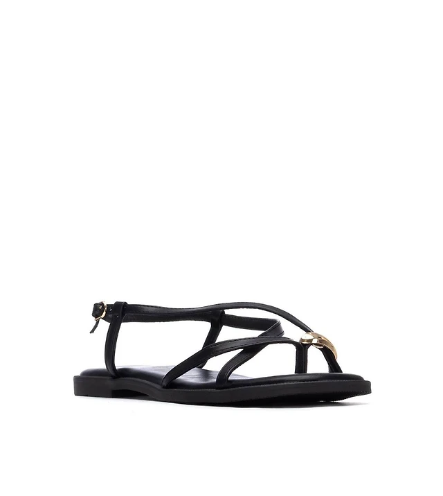 Berness Women's Hisako Dress Heeled Thong Sandal with Gold-Tone Detail