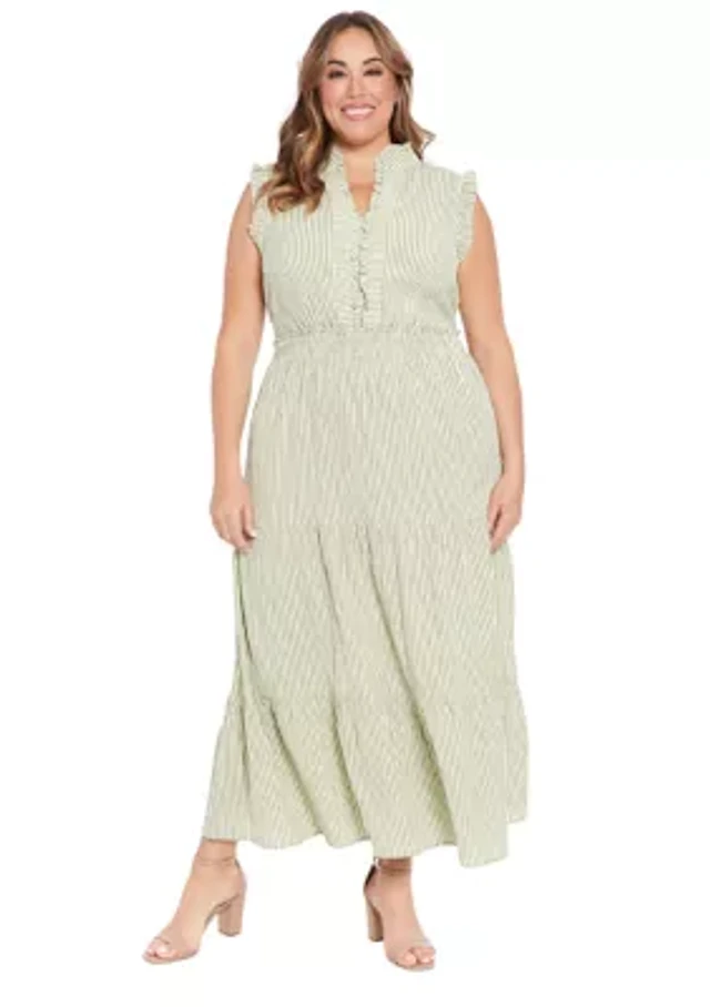 Plus Sleeveless V-Neck Solid Fit and Flare Dress