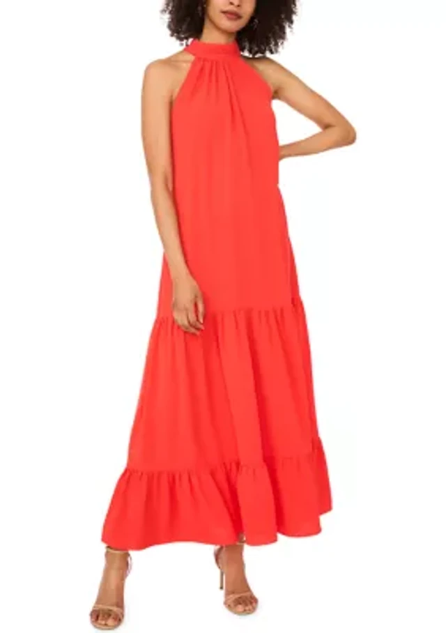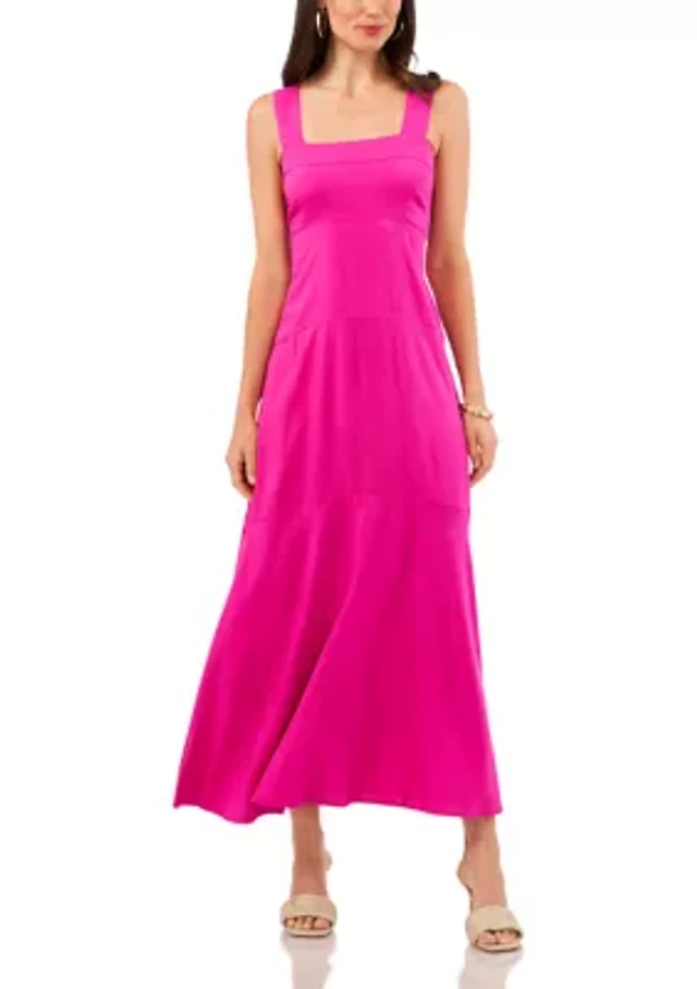 Petite Crew Neck Long Sleeve Mesh Midi Dress