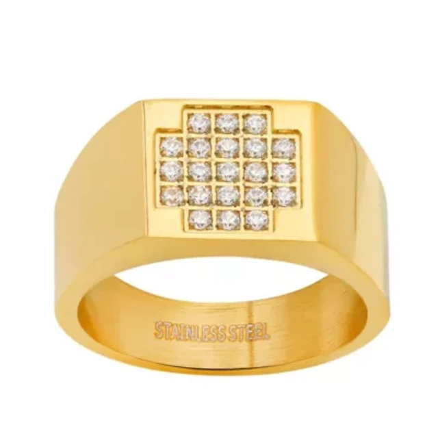Men's 18k gold plated stainless steel and simulated diamonds rectangle ring