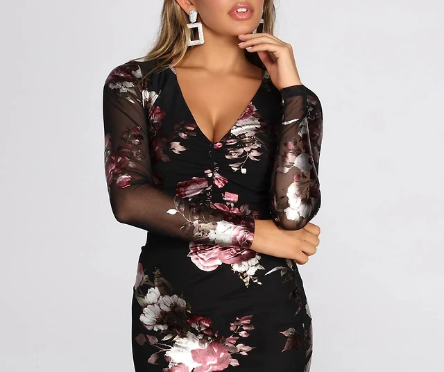 Floral Feeling Chiffon Off Shoulder Mini Dress