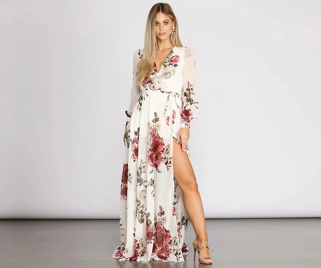 Aubrielle Formal Floral Chiffon A-Line Dress
