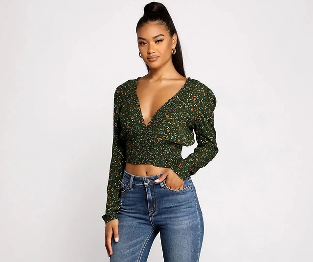 Sweet And Flirty Floral Puff Sleeve Blouse