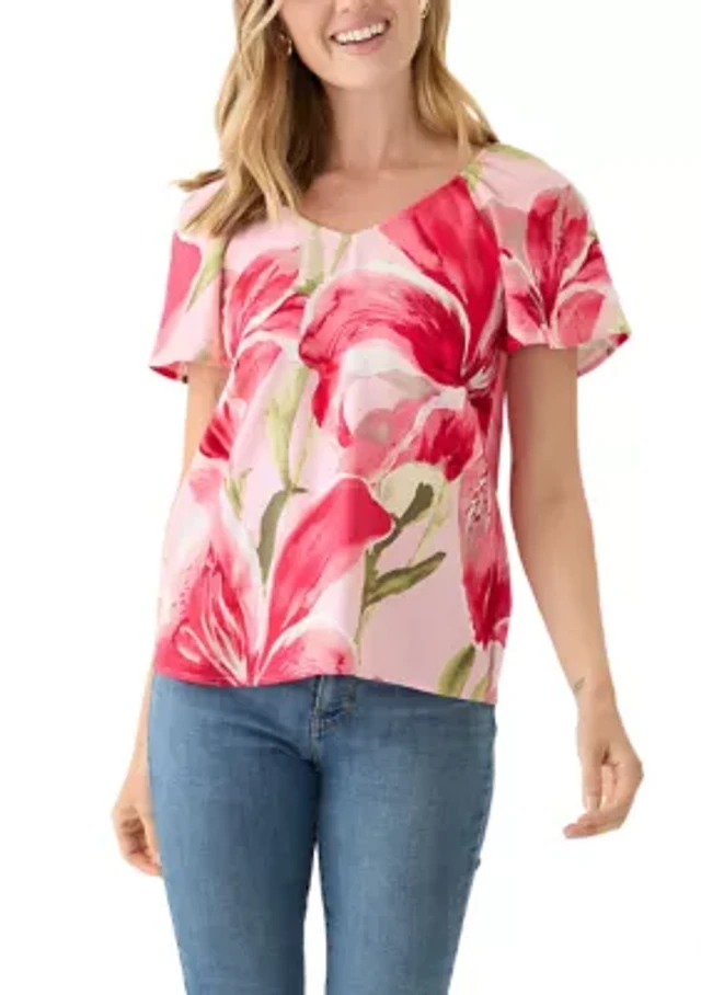Ann Taylor Floral One-Shoulder Tie Waist Blouse Rose Violet Women's