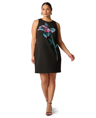 Kasper Plus Size Seamed Crepe One Button Blazer Pleat Neck Sleeveless Floral Top Stretch Crepe Flat Front Trousers