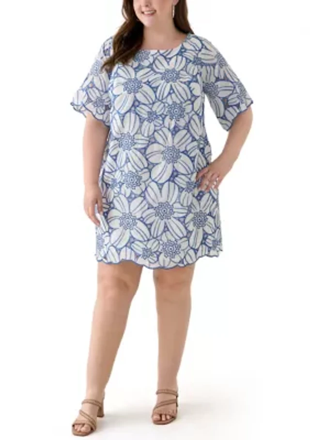 Plus Bell Sleeve Floral A-Line Dress
