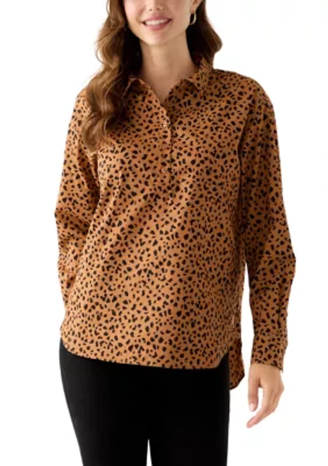 Plus 3/4 Sleeve Printed Button Down Shirt