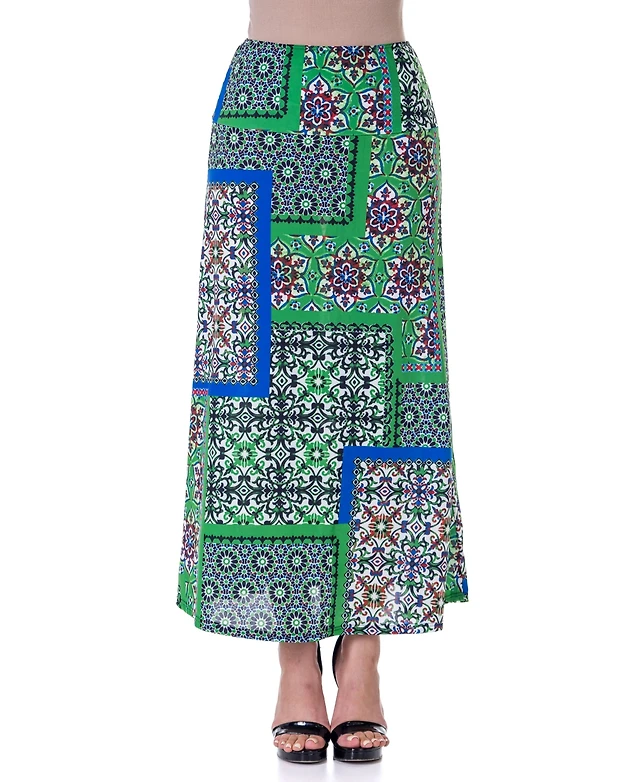 24seven Comfort Apparel Print Floral Elastic Waist Ankle Length Comfortable Maxi Skirt