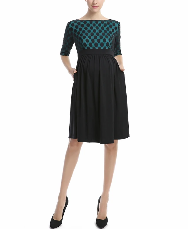 kimi + kai Maternity V-Neck Polka Dot Lace Dress