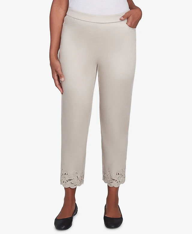 Alfred Dunner Women's Coming Up Roses Floral Cut Out Ankle Pants