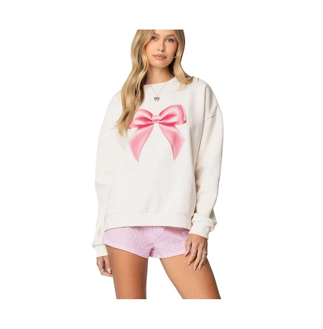 Edikted Womens Bow Brat Printed Sweatshirt