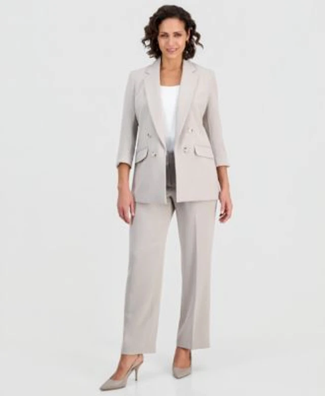 Kasper Womens Double Breasted Open Front Blazer High Rise Wide Leg Pants