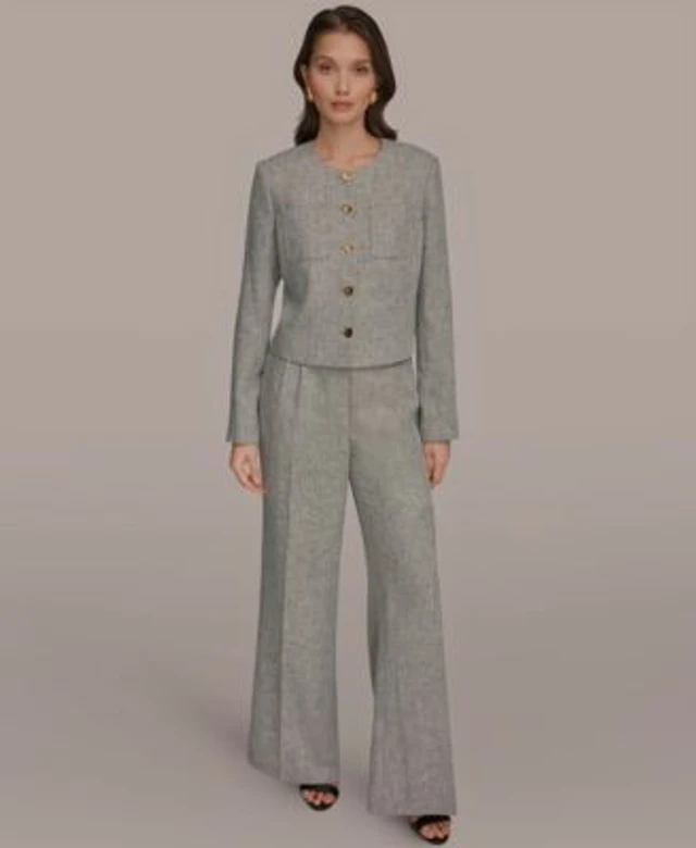 Donna Karan New York Womens Button Front Cropped Jacket High Waist Wide Leg Pants