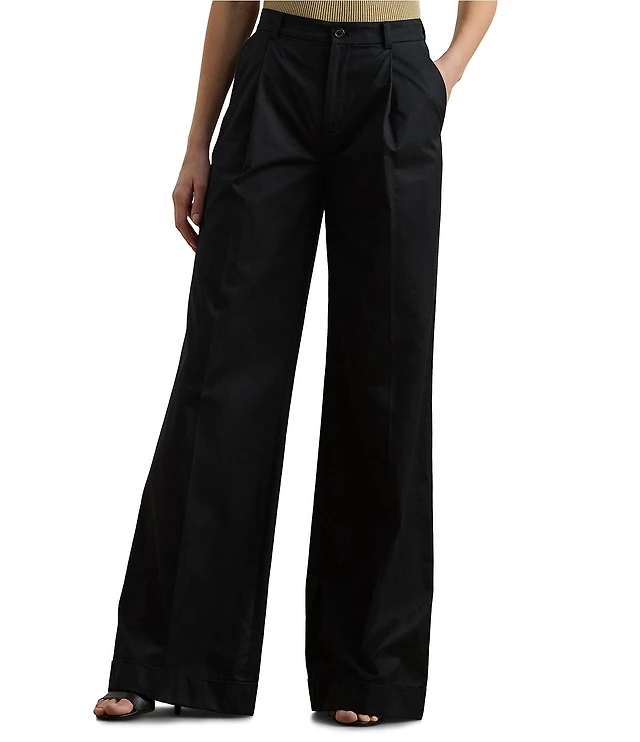 Lauren Ralph Lauren Pleated Cotton Twill High-Rise Wide Leg Pants