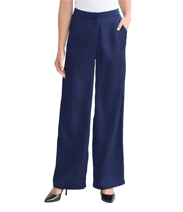 Kasper Petite Size Fly Front Side Pockets Wide Leg Pants