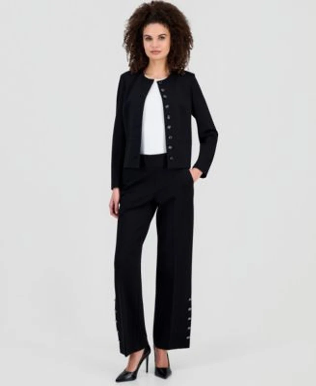 Anne Klein Womens Herringbone Open Front Blazer Herringbone Wide Leg Pants