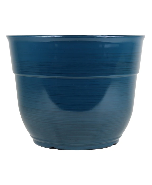 Garden Elements Glazed Brushed Happy Large Plastic Planter Dark Aqua 15 Inch