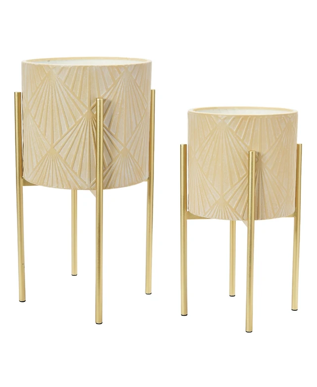 Modern Boho Embossed Metal Planters with Stands