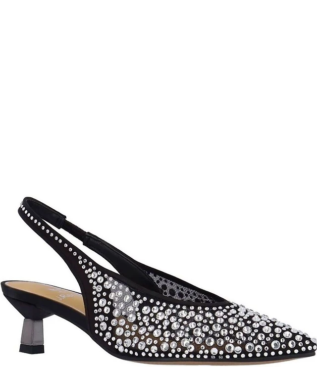 COACH Margot Crystal Signature Logo Jacquard Leather Buckle Slingback Pumps
