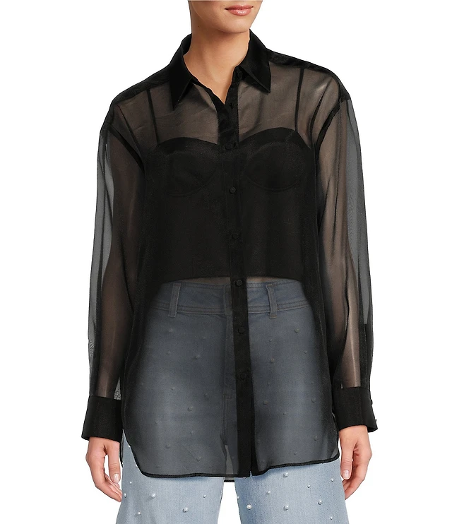 Antonio Melani Priscilla Organza Sheer Long Sleeve Button Front Coordinating Blouse