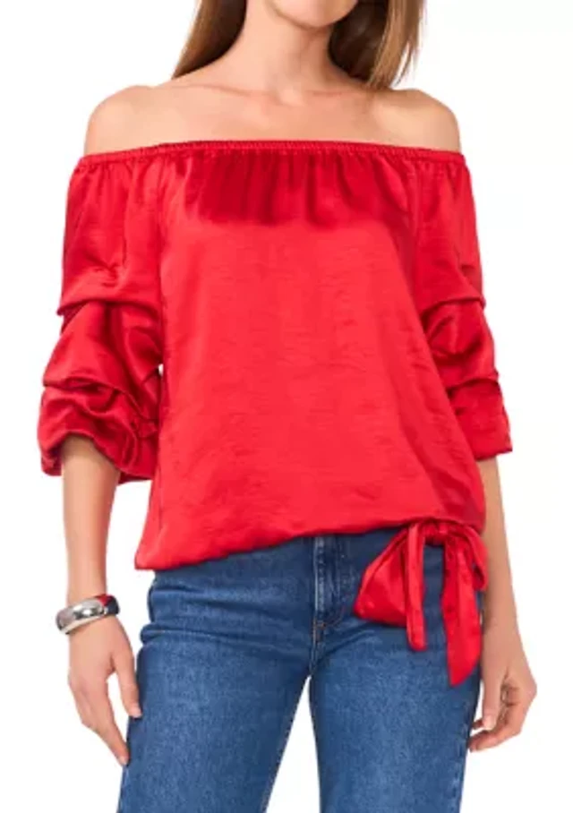 Plus 3/4 Sleeve Crinkle Woven Blouse