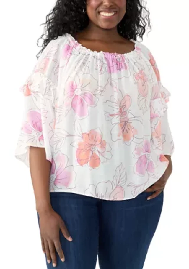 Plus Embellished Floral Sublimation Top