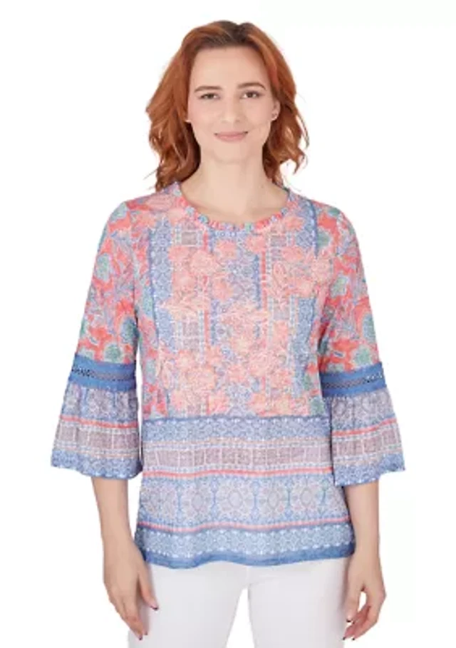 Petite Floral Overlay Ikat Embroidered T-Shirt