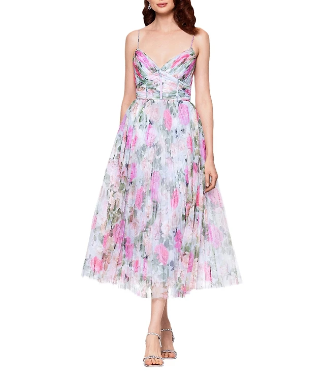 Pear Culture Printed Floral Mesh Strapless Corset Tiered Dress