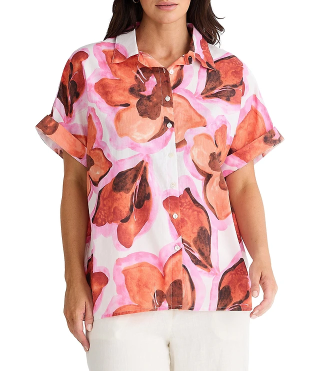 Brave + True Alice Short Sleeve Floral Print Button Down Blouse