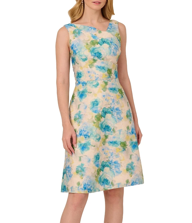 Anne Klein Chiffon Floral Print Square Neck Sleeveless A-Line Dress