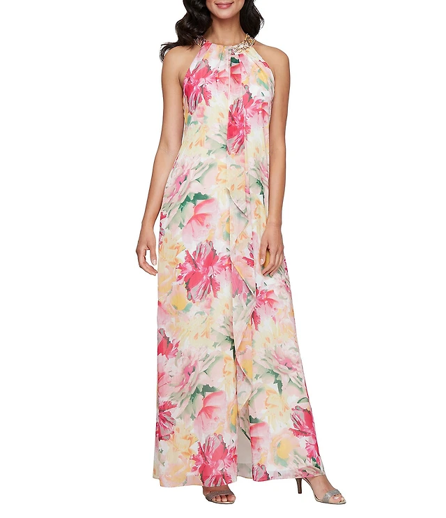 Ignite Evenings Floral Print Halter Maxi Dress