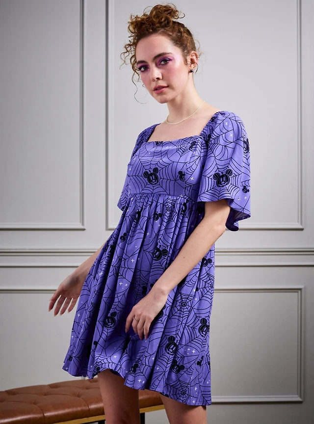 Disney Mickey Mouse Jack-o-Lantern Spiderweb Allover Print Smock Dress - BoxLunch Exclusive