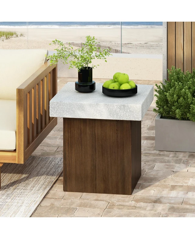 Gymax 5 Piece Patio Rattan Woven Conversation Set Stable Acacia Wood Frame for Backyard w/ Coffee Table