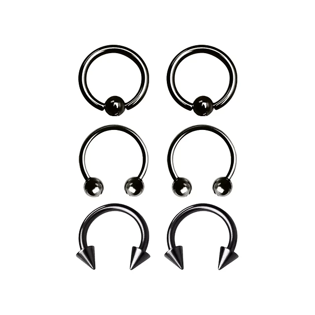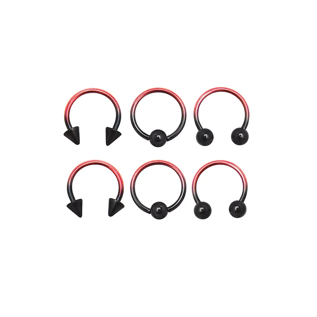 Steel Ball Spike & Clear CZ Circular Barbell 6 Pack