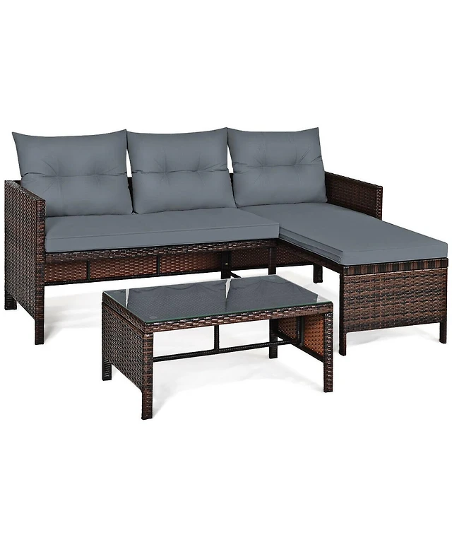 Sugift 4 Pieces Comfortable Outdoor Rattan Sofa Set with Glass Coffee Table