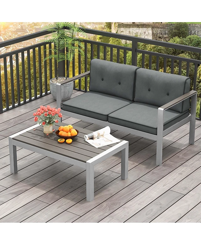 Gymax Set of 3 Furniture Set w/ Cushions & Tempered Glass Coffee Table