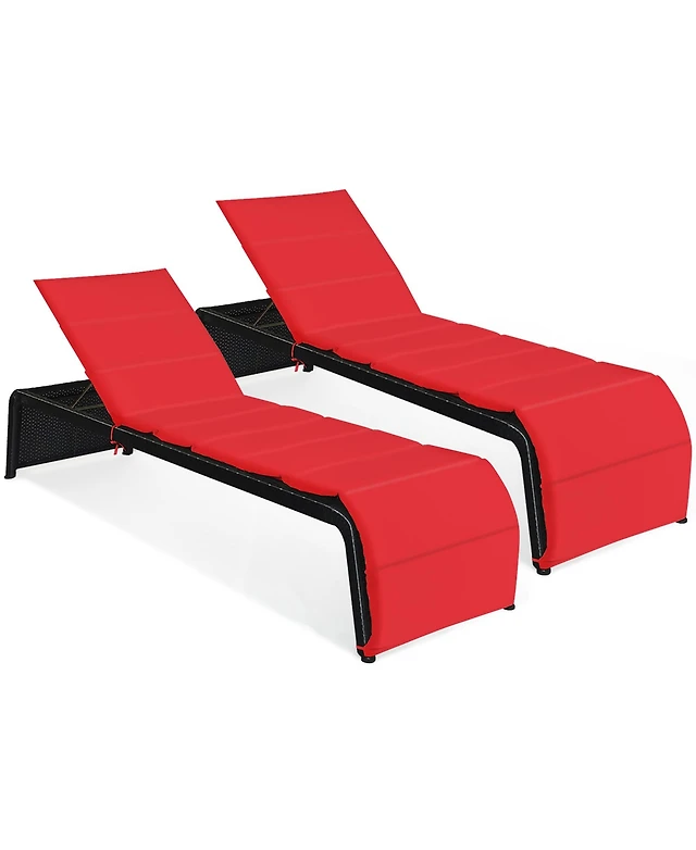 2 Pcs Outdoor Chaise Lounge Chair Patio Recliner with 6-Level Backrest Cushion
