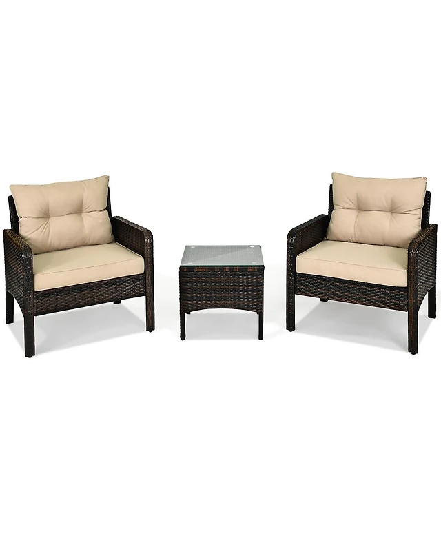 3PCS Patio Rattan Furniture Set Coffee Table